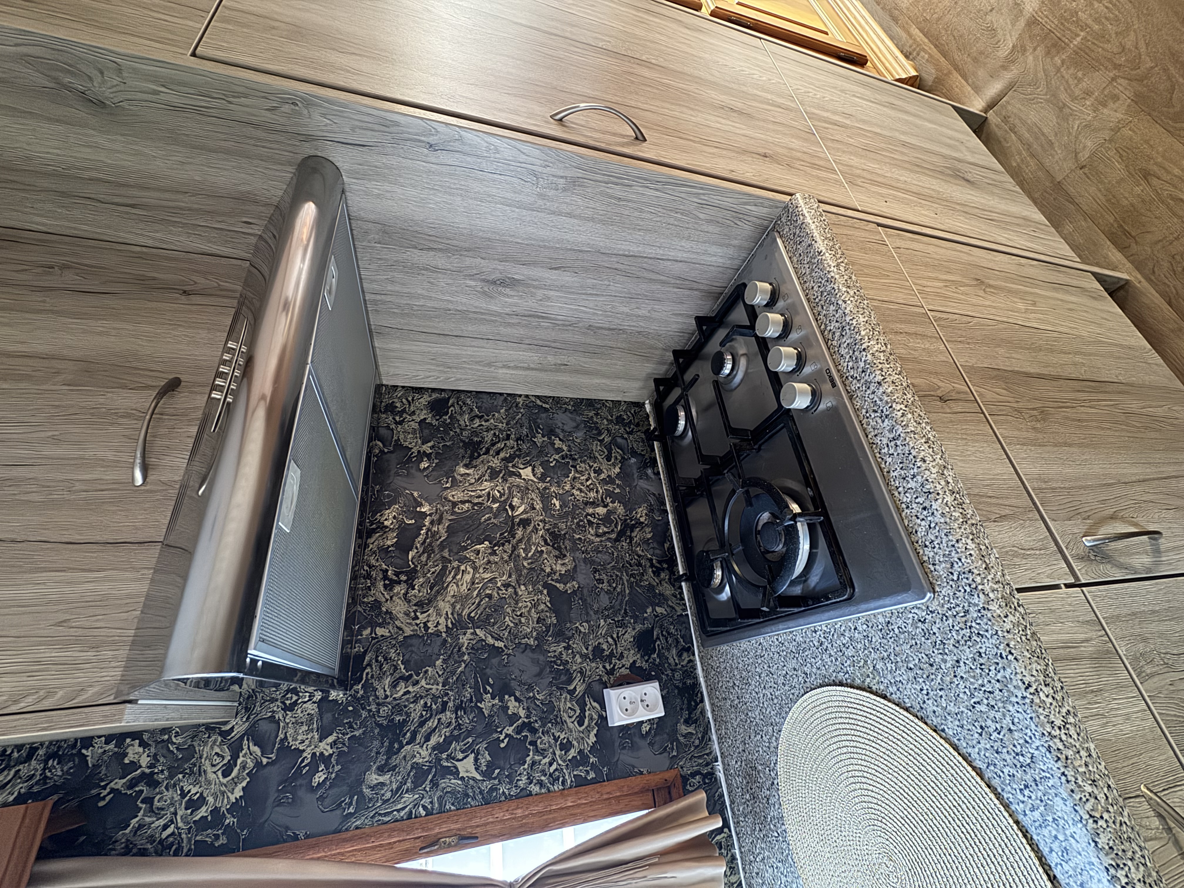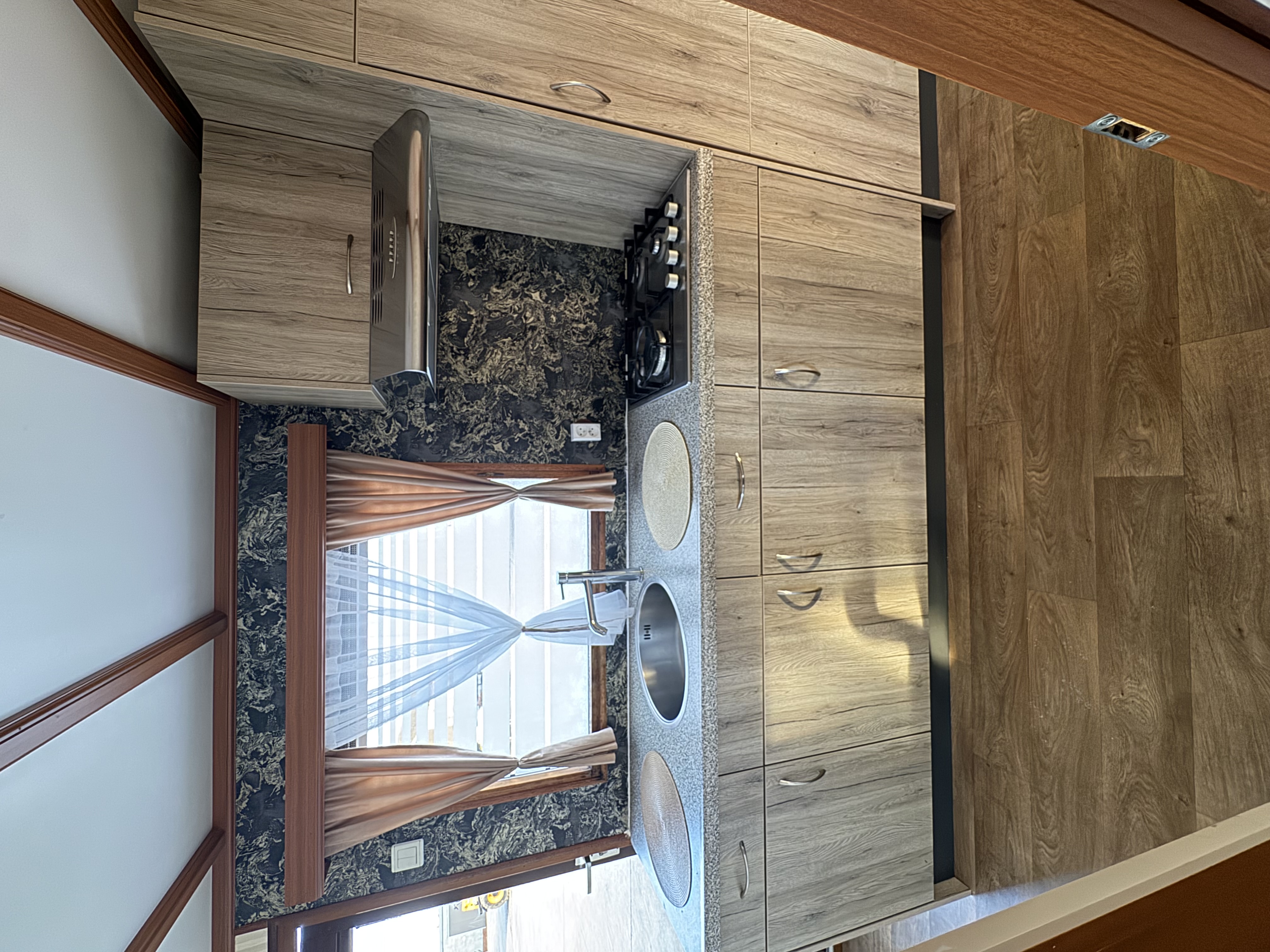 -KUCHNIA : meble , płytą gazowa 4 palnikowa , pochłaniacz elektryczny , zlewozmywak , lodówka w zabudowie